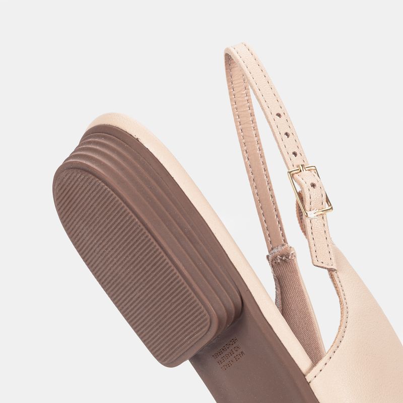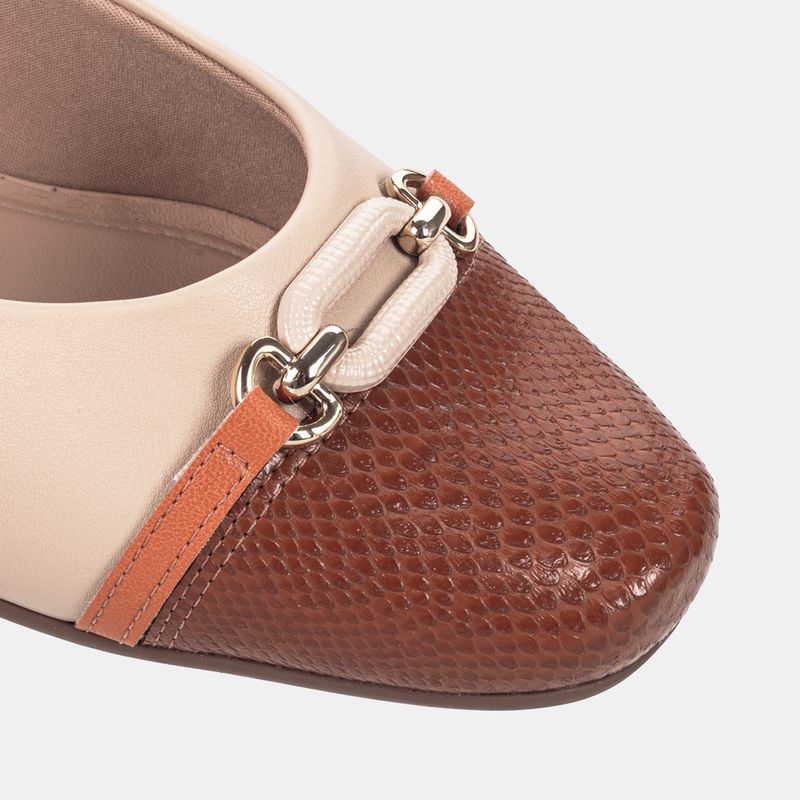 Com bico texturizado e detalhe metálico, essa slingbac...