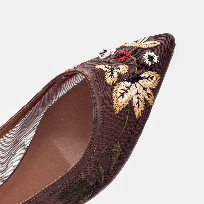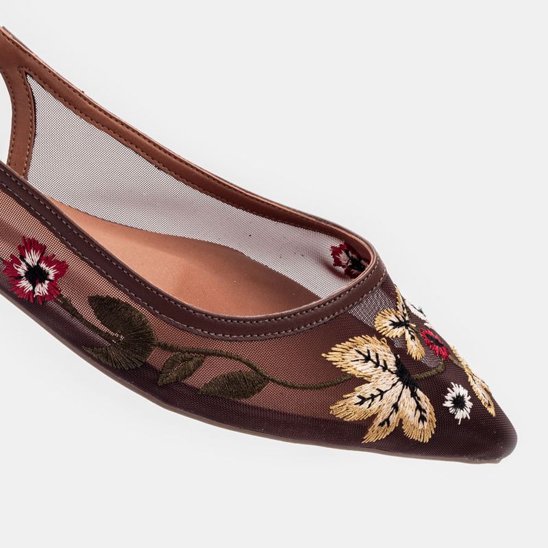 Sapatilha aberta bordada com bico fino e tira traseira com fechamento em fivela Sintético chocolate ...