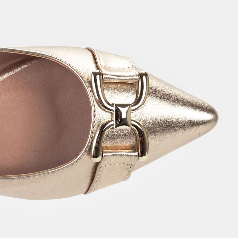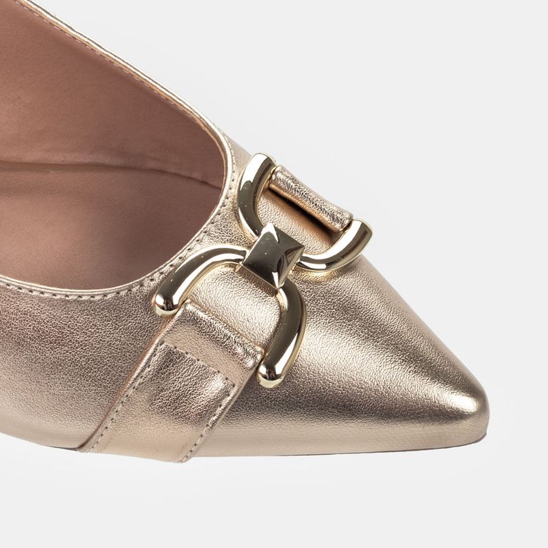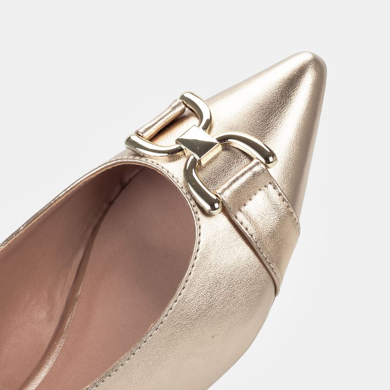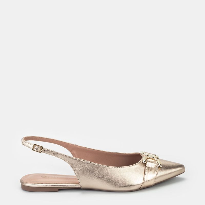 Sapatilha aberta com bico fino, tira com fivela frontal e tira com ajuste em fivela Sintético ouro F...