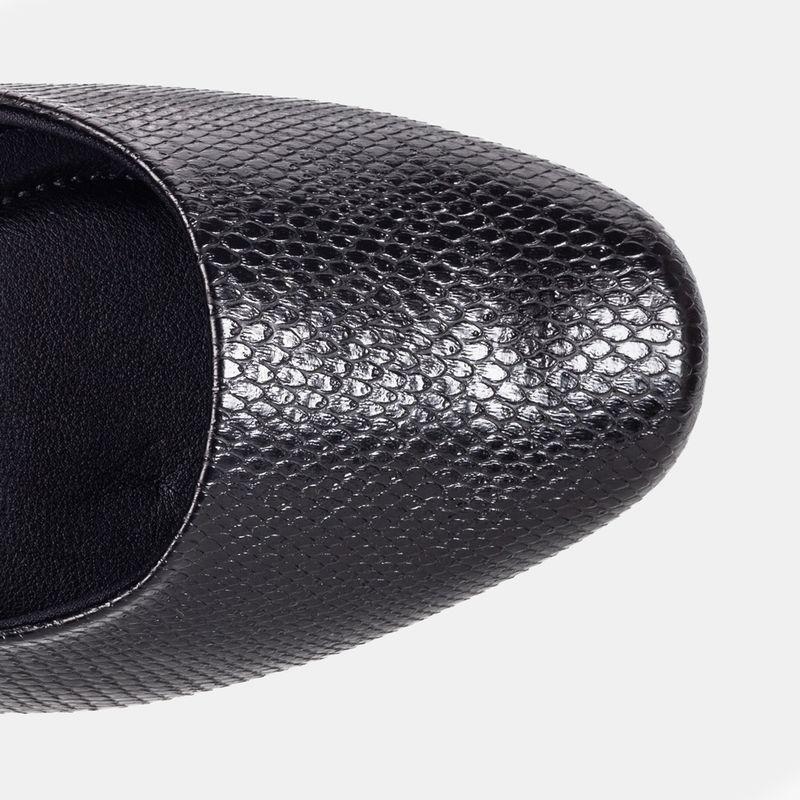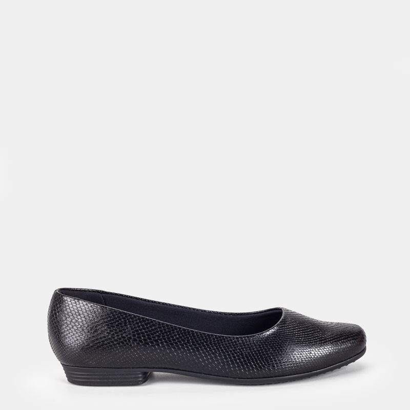 Sapatilha confort com bico redondo Sintético texturizado preto Palmilha forrada, acolchoada e supe...