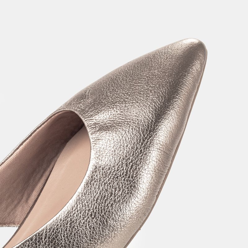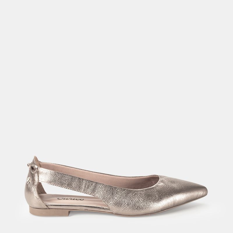 Sapatilha com bico fino, recorte nas laterais e laço na parte traseira Couro comum prata velho Fo...
