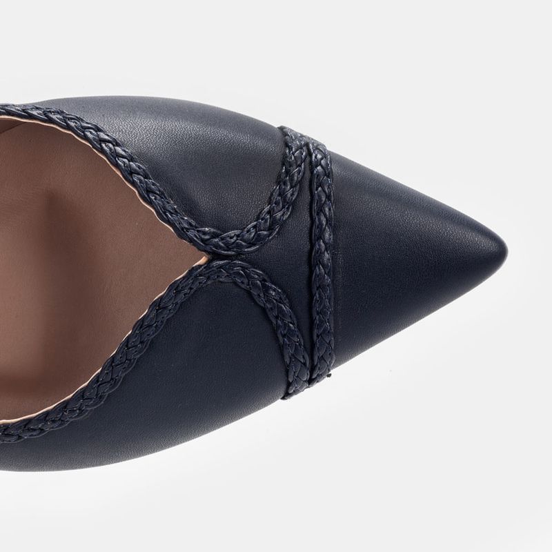 Sapatilha com bico fino com detalhes em trança no cabedal Sintético marinho Tranças marinho e pespon...