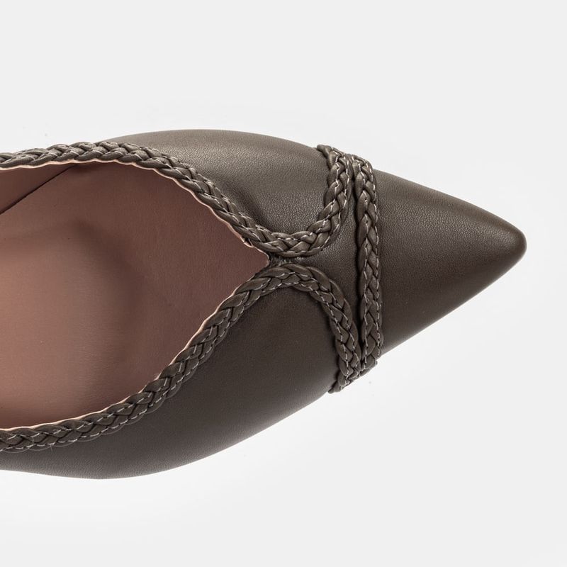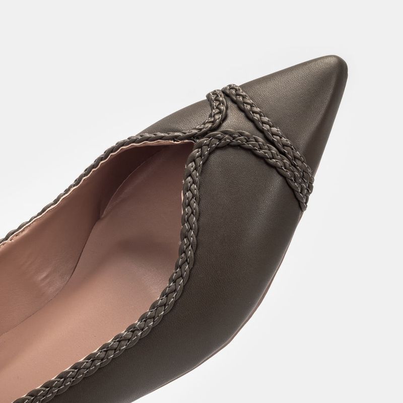 Sapatilha com bico fino com detalhes em trança no cabedal Sintético verde militar Tranças verdes e...