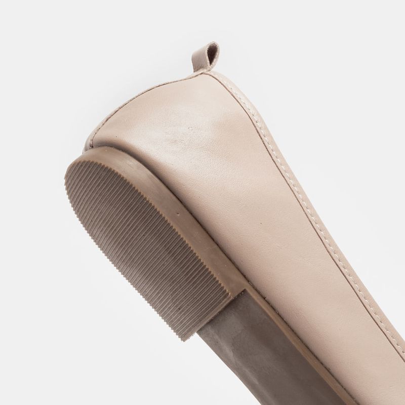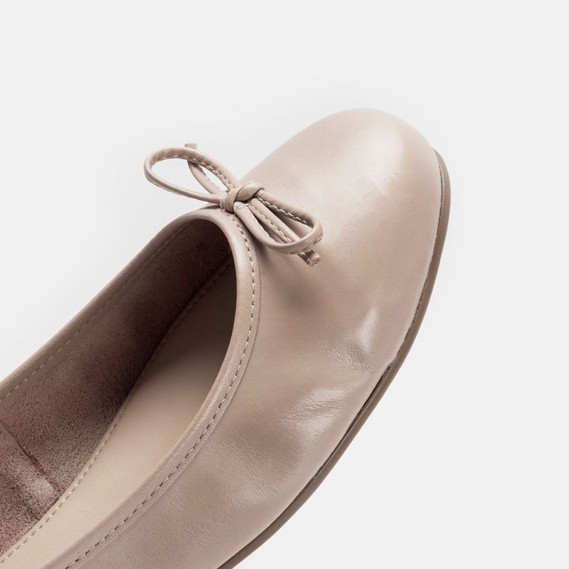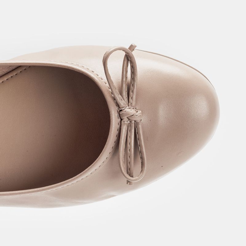 Sapatilha com bico redondo, laço frontal e puxador traseiro Couro macio rosa claro Sem forro Palm...