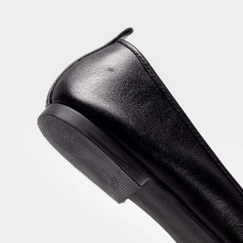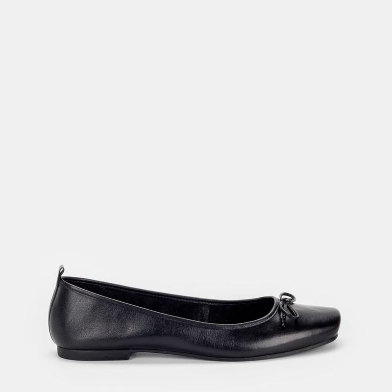 Sapatilha com bico quadrado, laço frontal e puxador traseiro Couro comum preto Laço marrom Forro ...