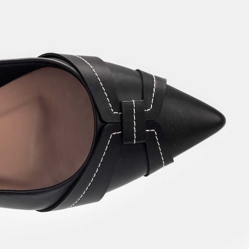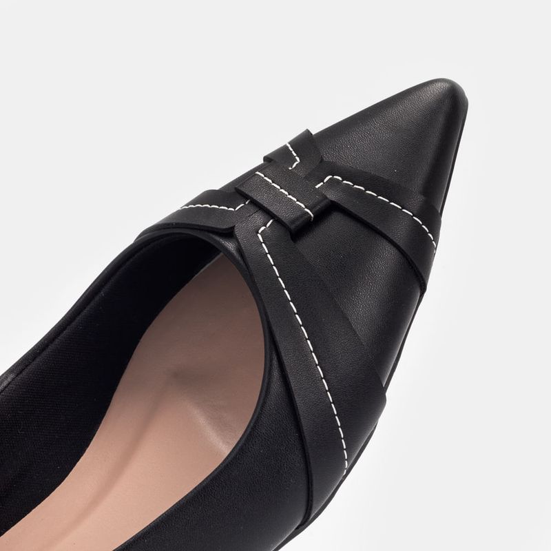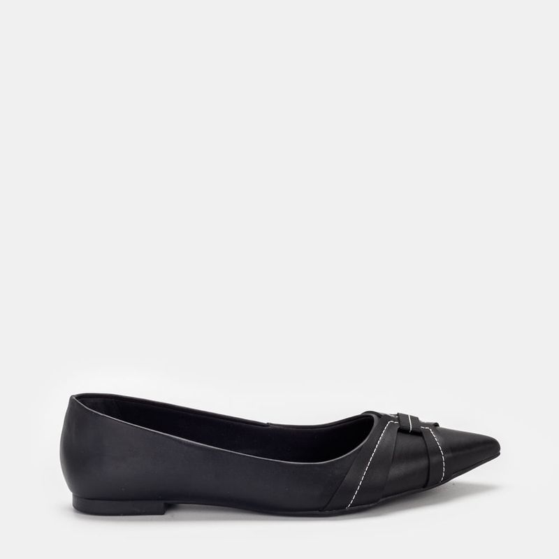 Sapatilha com bico fino e tiras pespontadas Sintético preto Forro em tecido sedoso Palmilha forrada,...