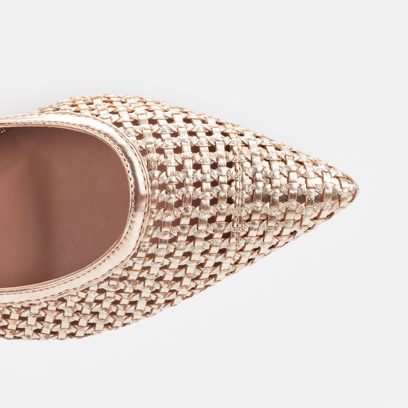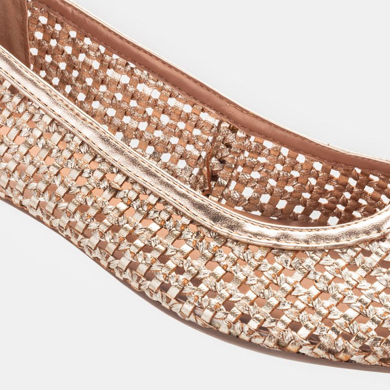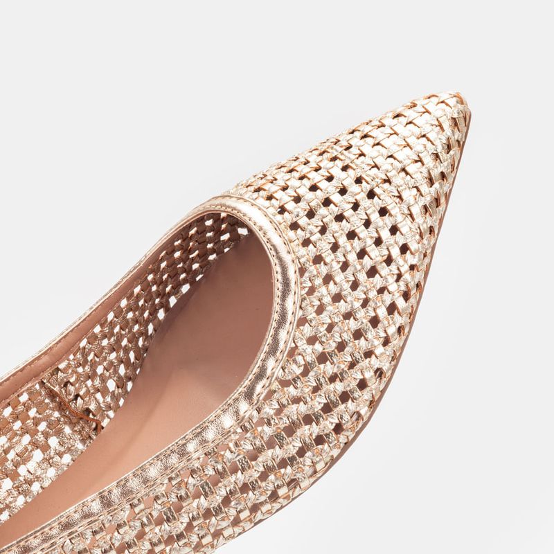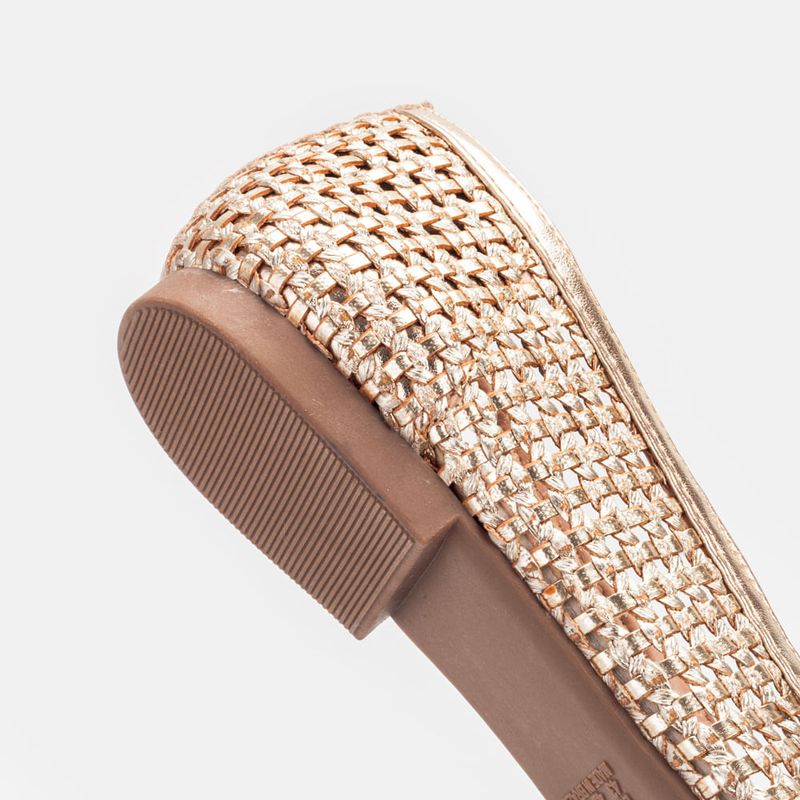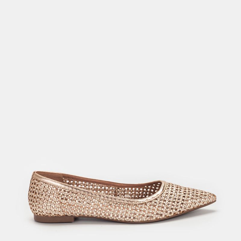 Sapatilha tramada vazada com bico fino Sintético ouro Palmilha forrada, acolchoada e super macia Sol...
