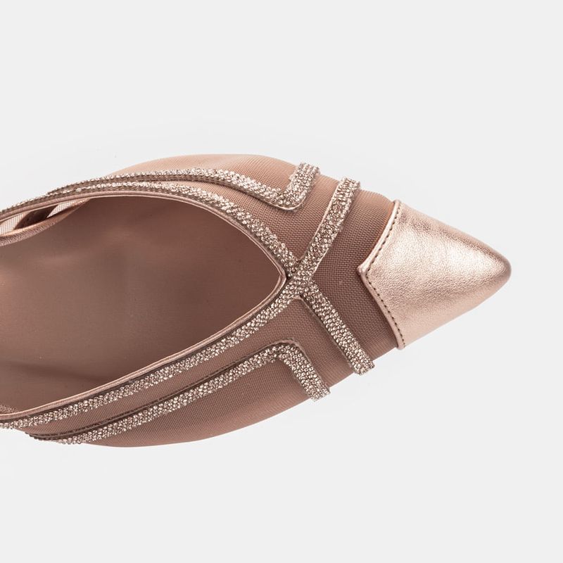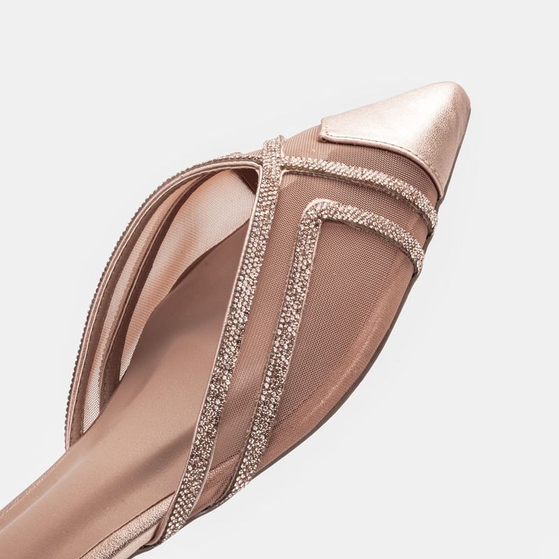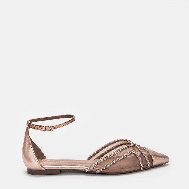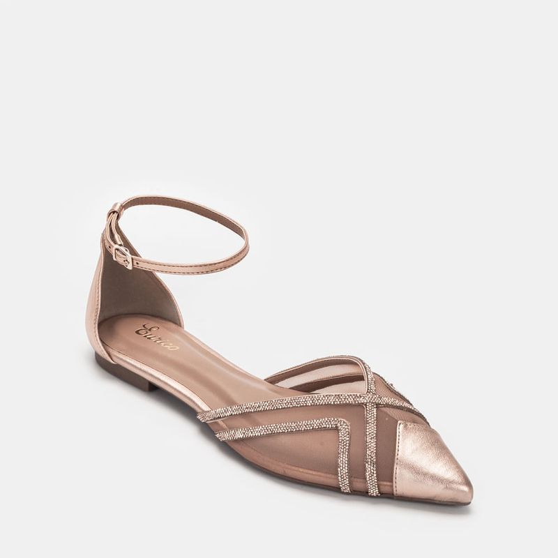 Sapatilha com traseira fechada, com bico fino e tira no tornozelo com fechamento em fivela Sintético...