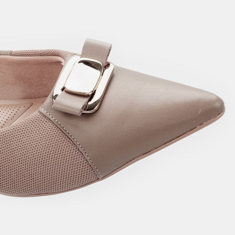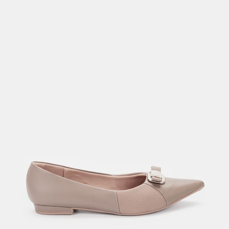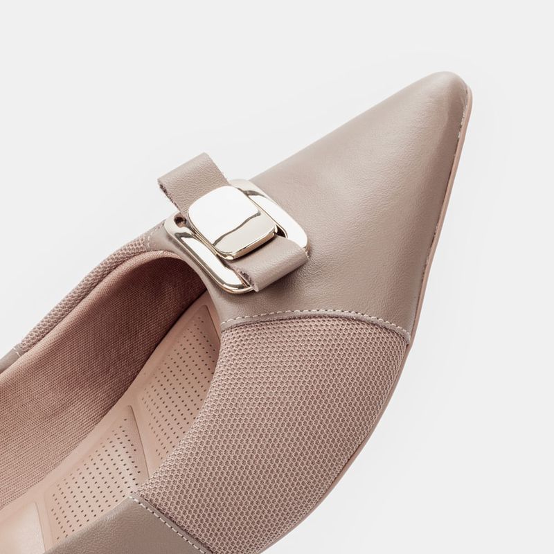 Sapatilha com bico redondo com enfeite frontal Tecidos laterais que se ajustam aos joanetes, proporc...