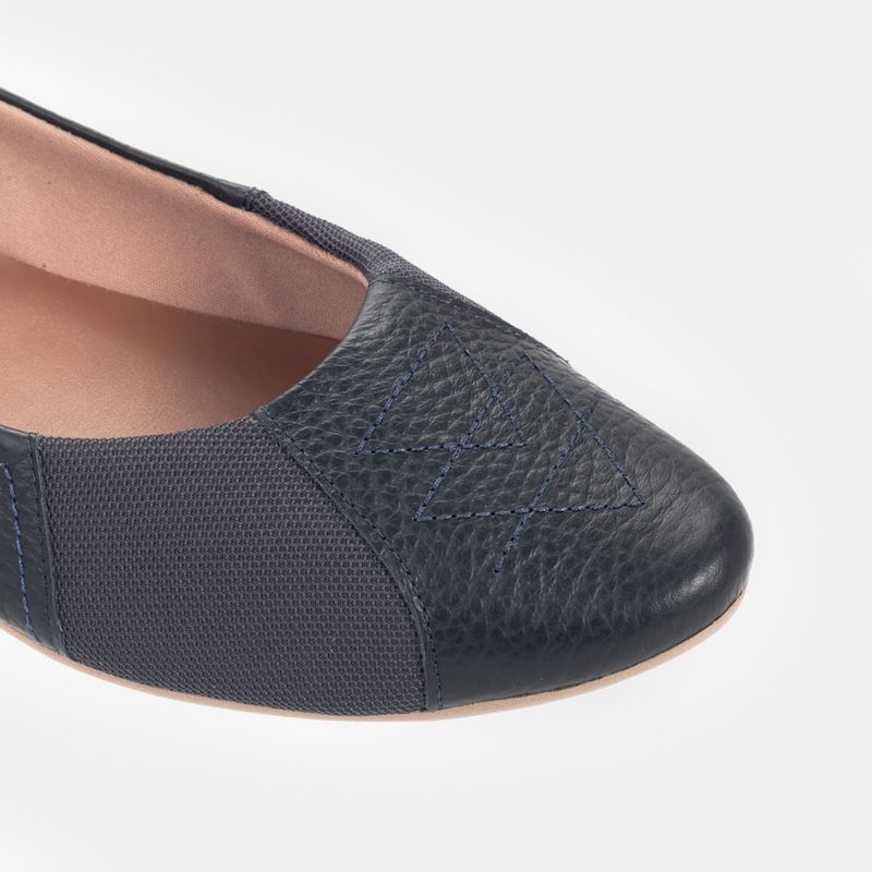 Sapatilha com bico redondo e acabamento pespontado