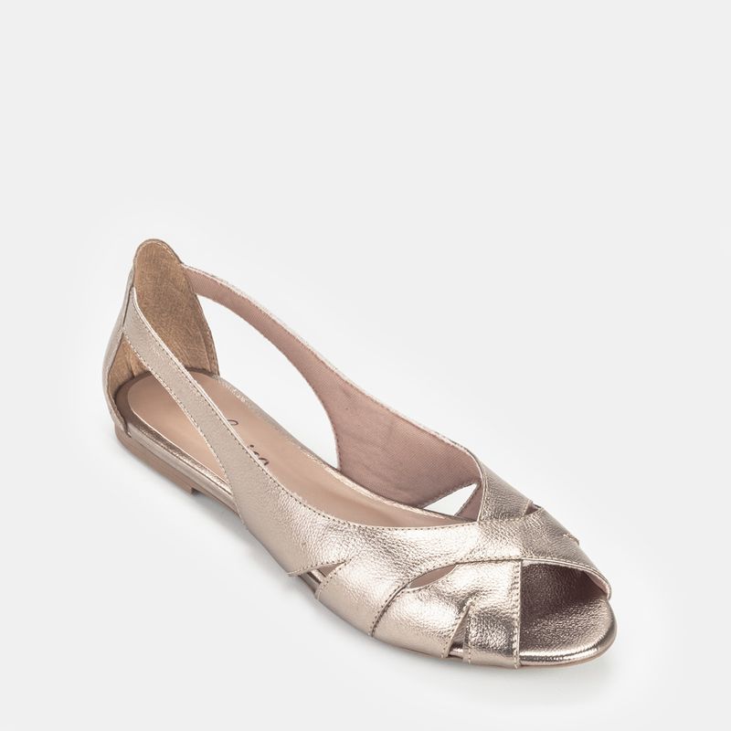 Sapatilha vazada nas laterais com tiras cruzadas Couro prata velho Forro com tecido sedoso Palmilha ...