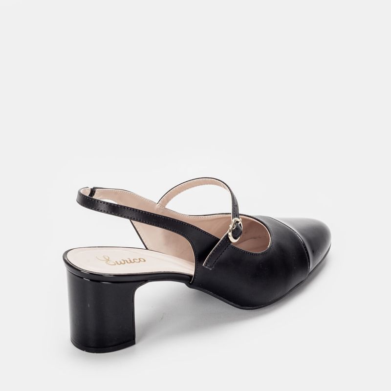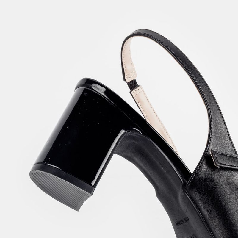 Sapato boneca prime com salto blocado médio, bico arredondado em verniz, traseira ajustável com elás...