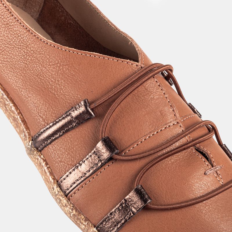 Esta sapatilha marrom com detalhes em bronze combina...