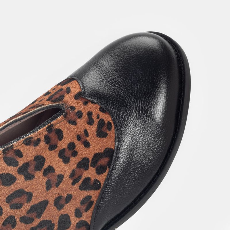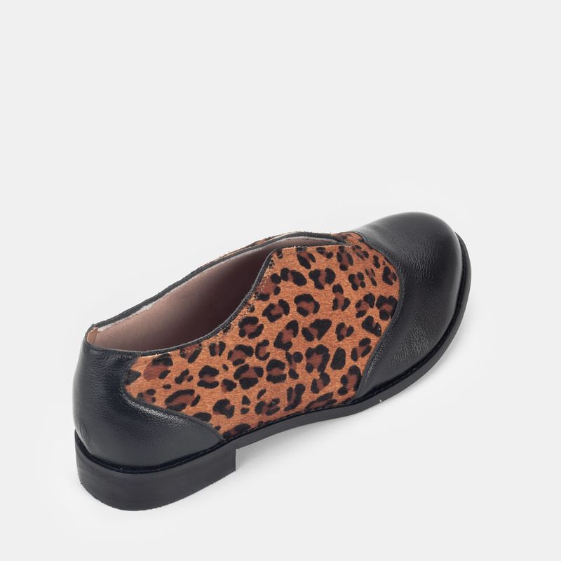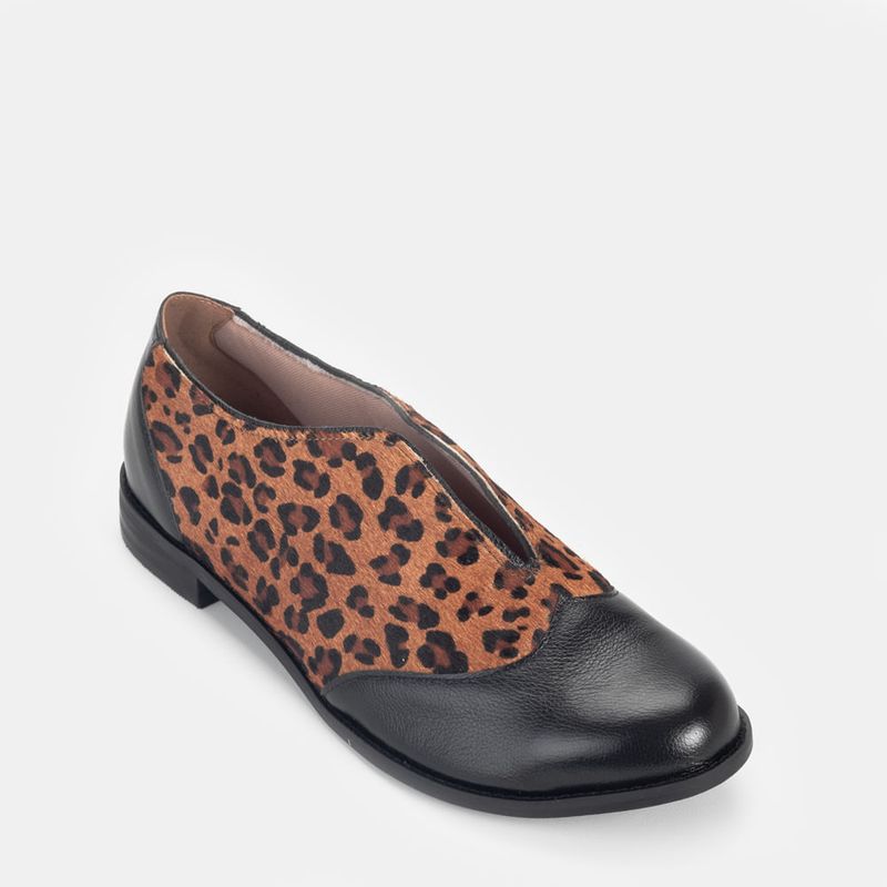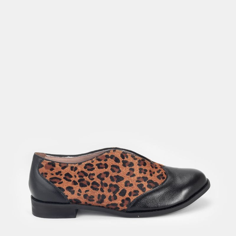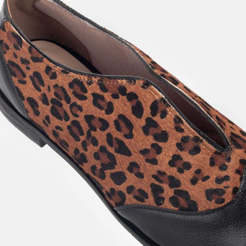 Sapato aberto estilo oxford sem cadarço com biqueira em couro Couro animal print Forro parcial em t...