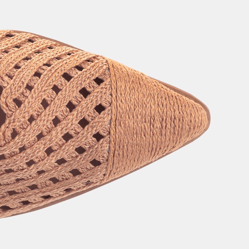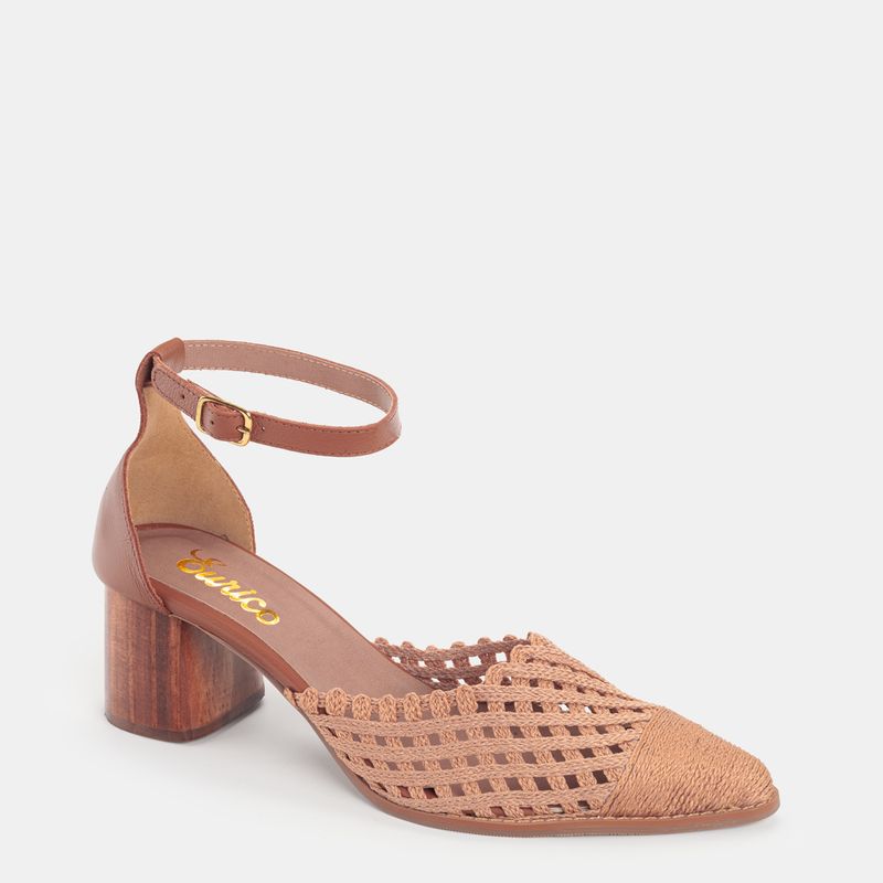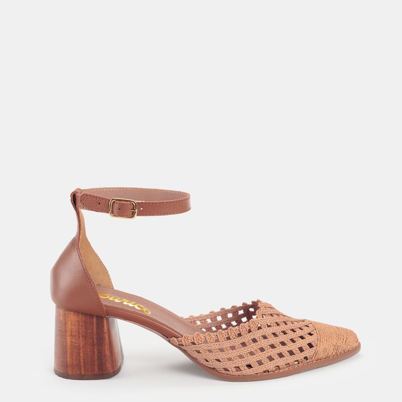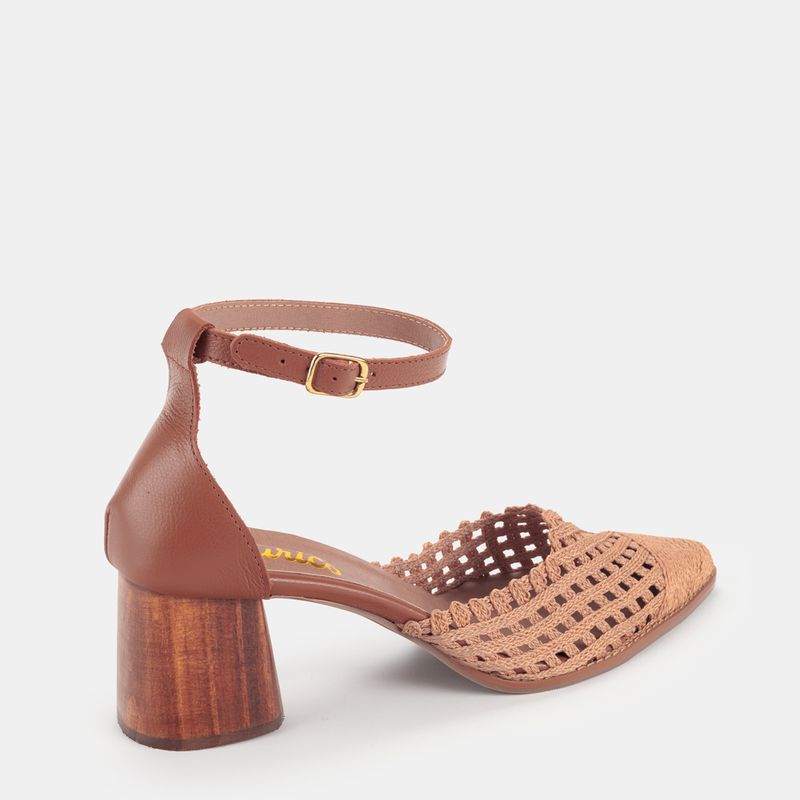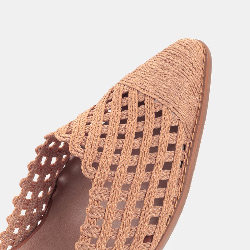 Este scarpin aberto é ideal para looks que buscam um toque artesanal elegante e confortável.