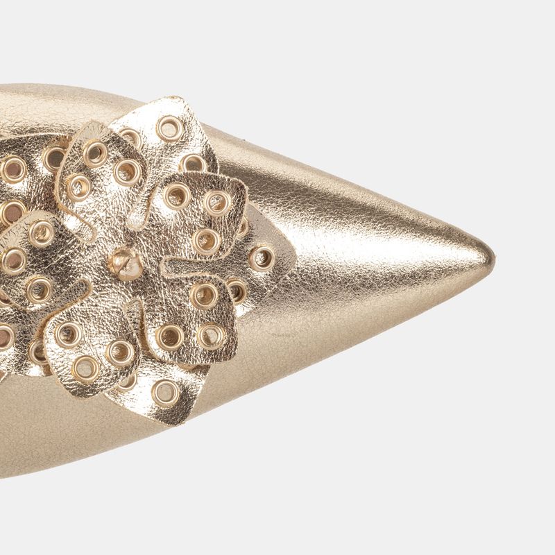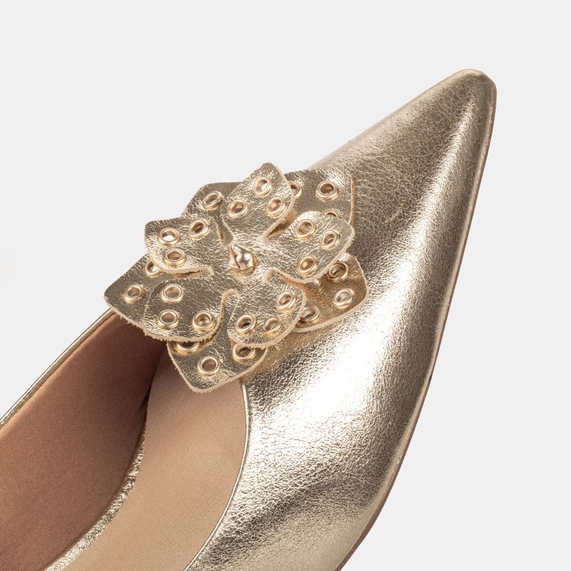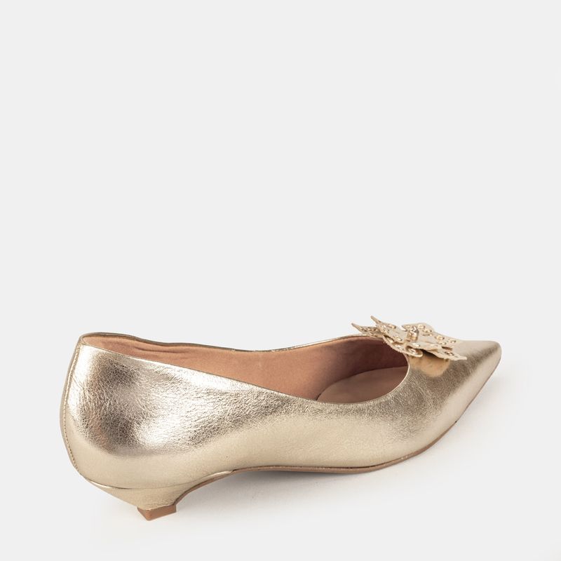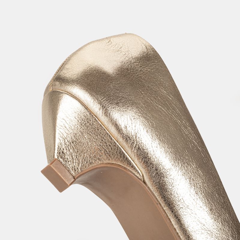 Com um design clássico e um toque de cor, este scarpin em tom dourado é a peça ideal para adicionar ...