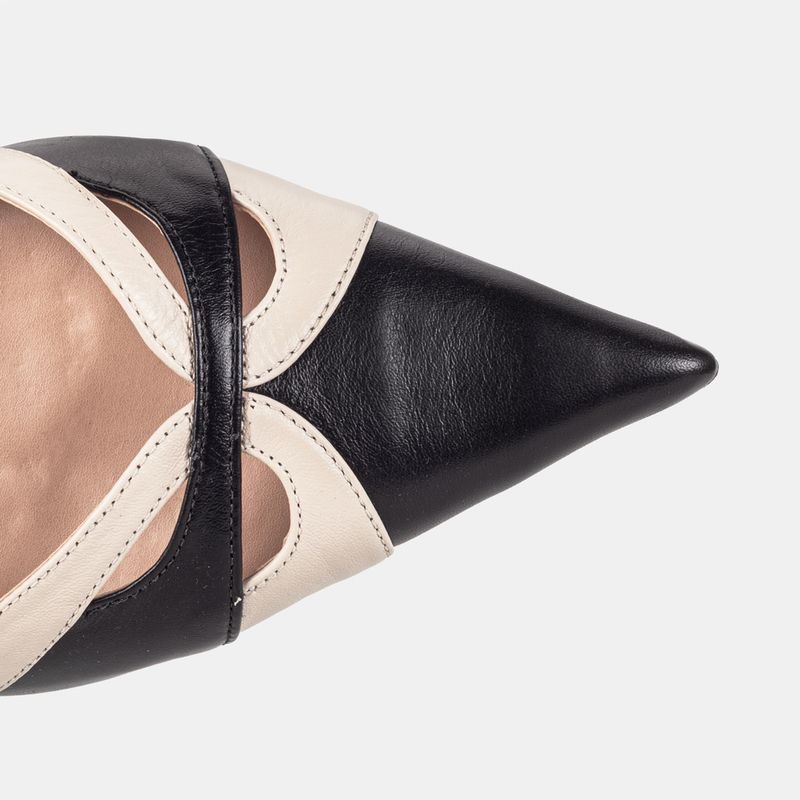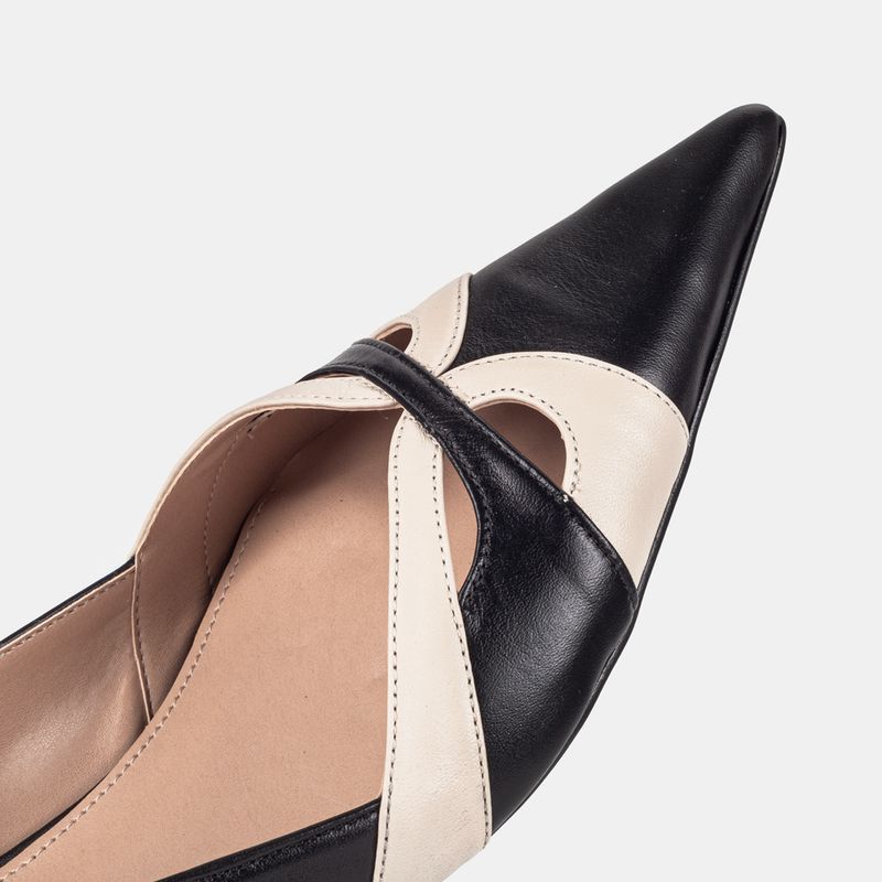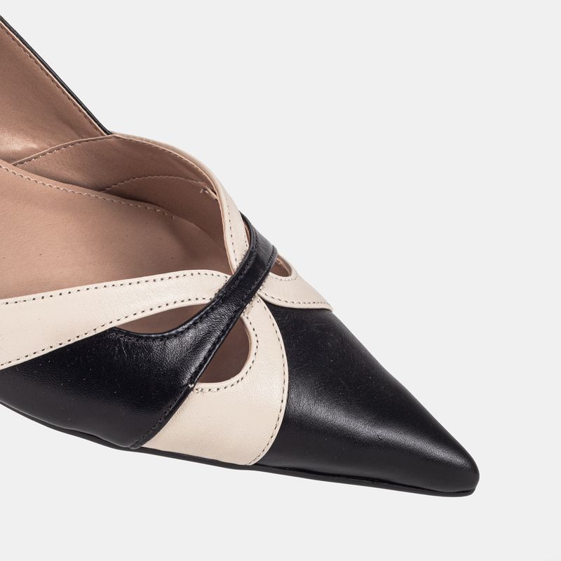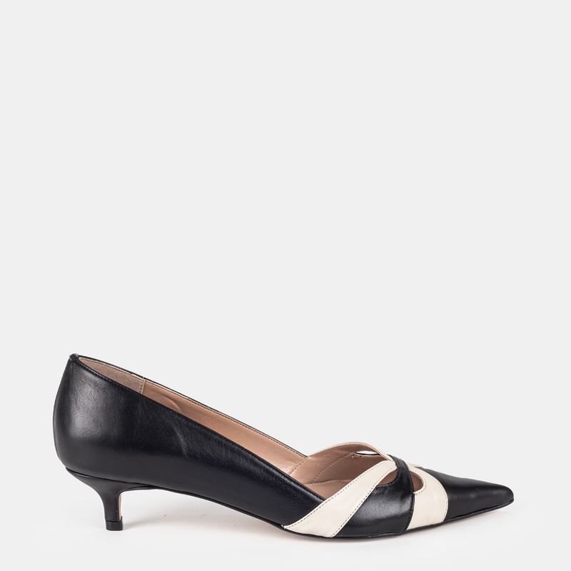Com um design clássico e elegante, este scarpin em tons de preto e off white é a peça ideal para adi...