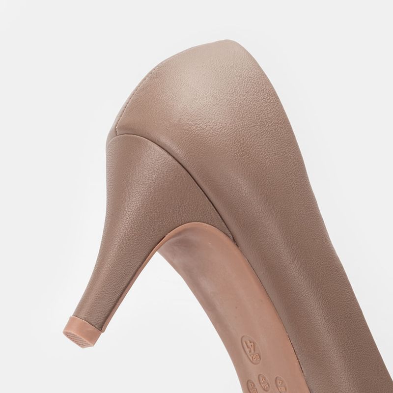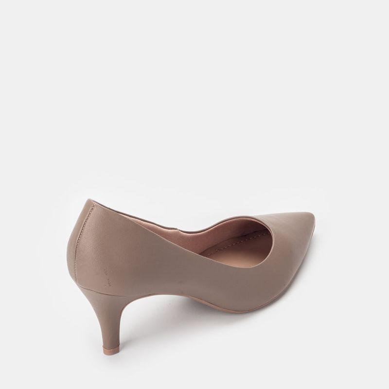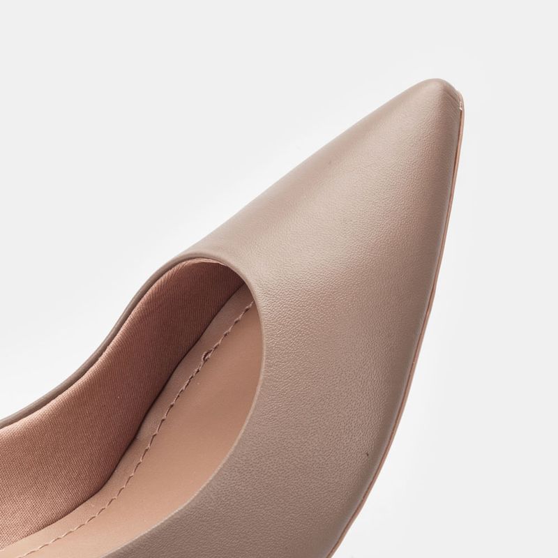 Scarpin clássico com bico fino Couro amêndoa Salto fino 6,5 cm Palmilha macia com tecnologia que imp...
