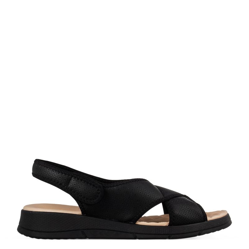 Sandália confort com salto anabela baixo, tira frontal com enfeite e fechamento com velcro Sintétic...