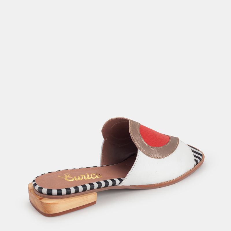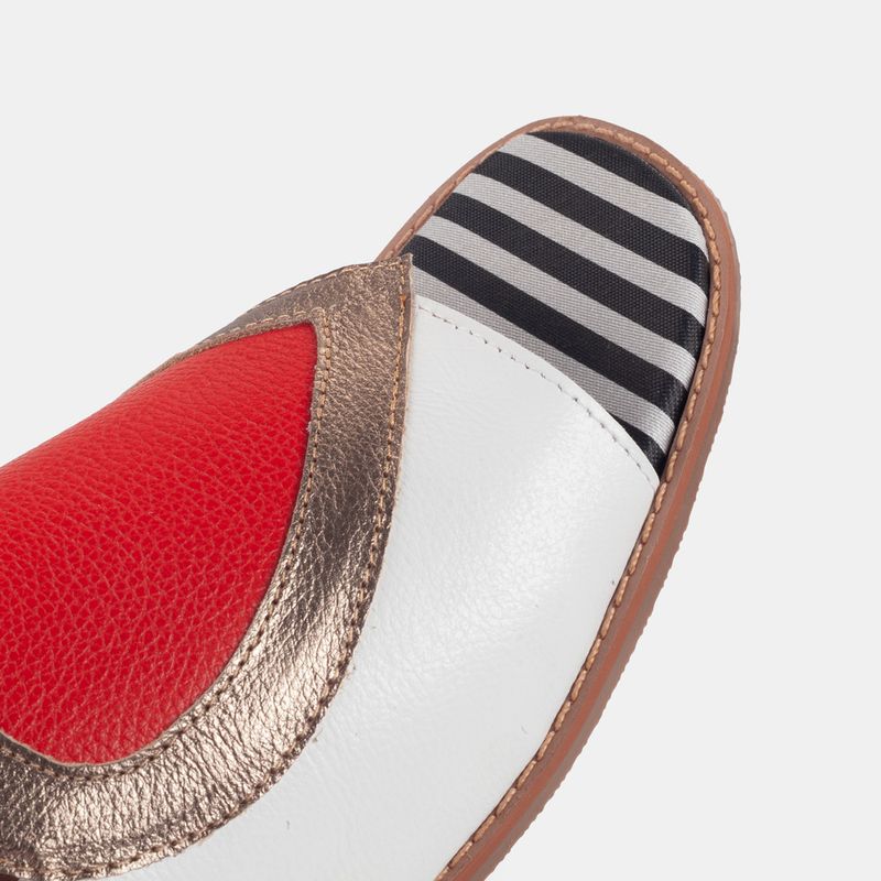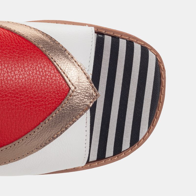 Este tamanco combina conforto, a qualidade do couro e um design divertido com toques de cor.