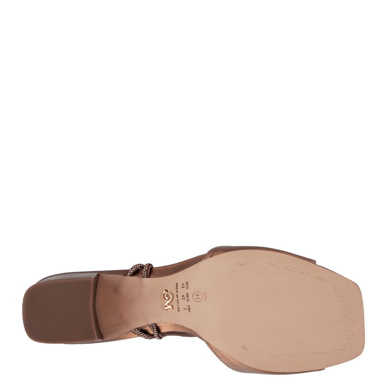 Tamanco com tira grossa na frente e tiras onduladas com strass no peito do pé com salto blocado Cou...