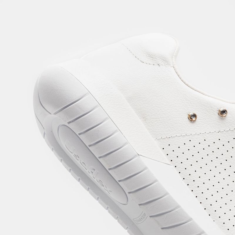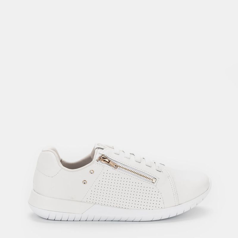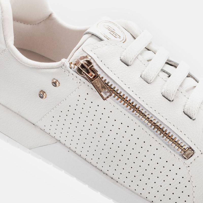 Tênis casual com zíper ajustável, fechamento em elástico e strass laterais Couro com micro furos br...
