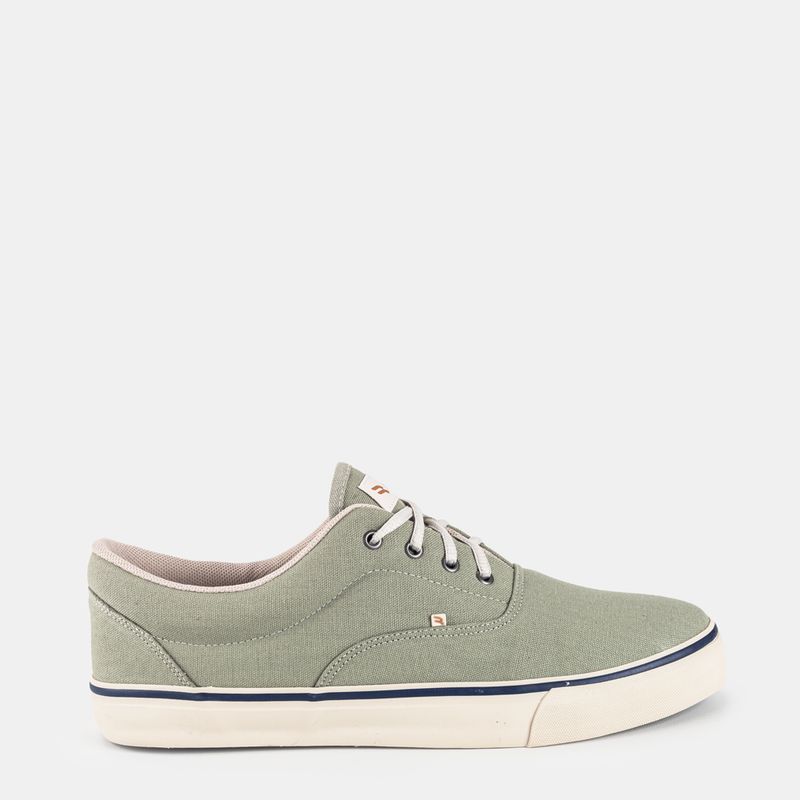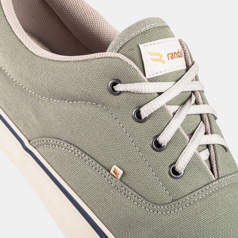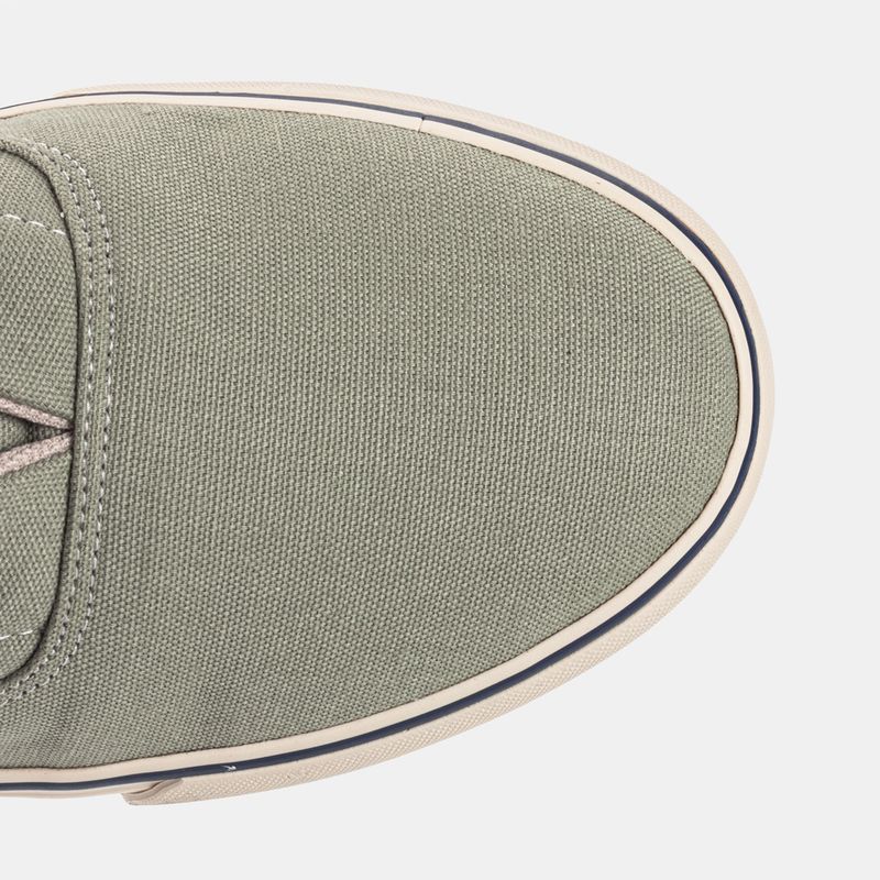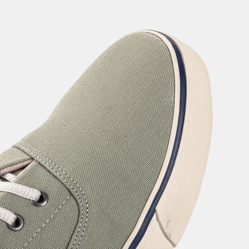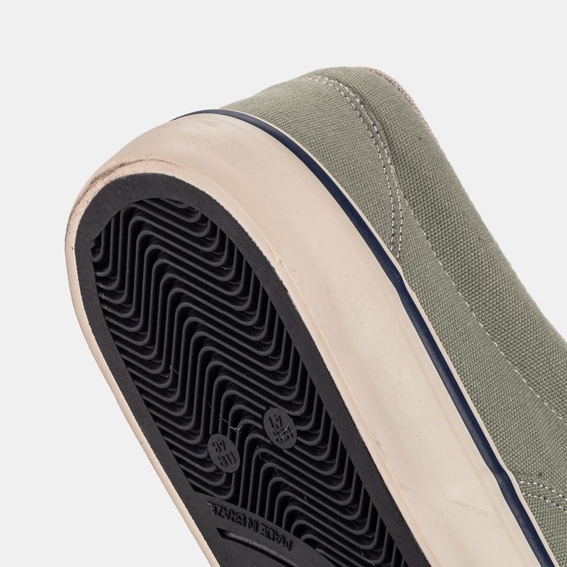 Tênis casual com amarração em cadarço Lona verde e friso marinho Palmilha forrada, com reforço ana...