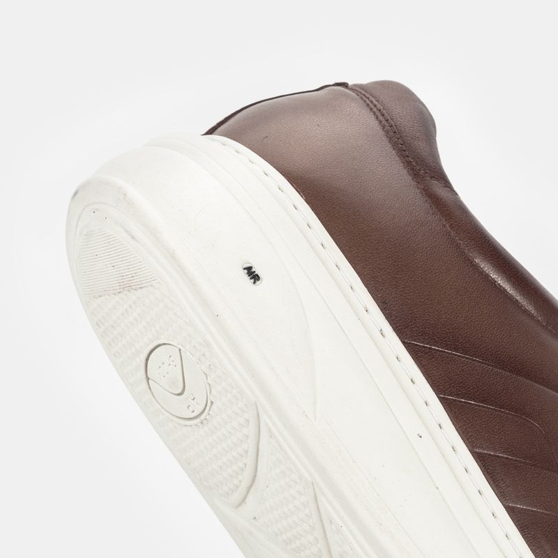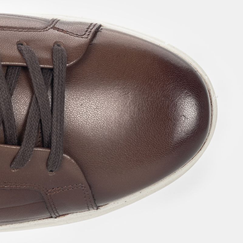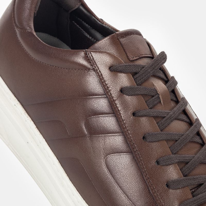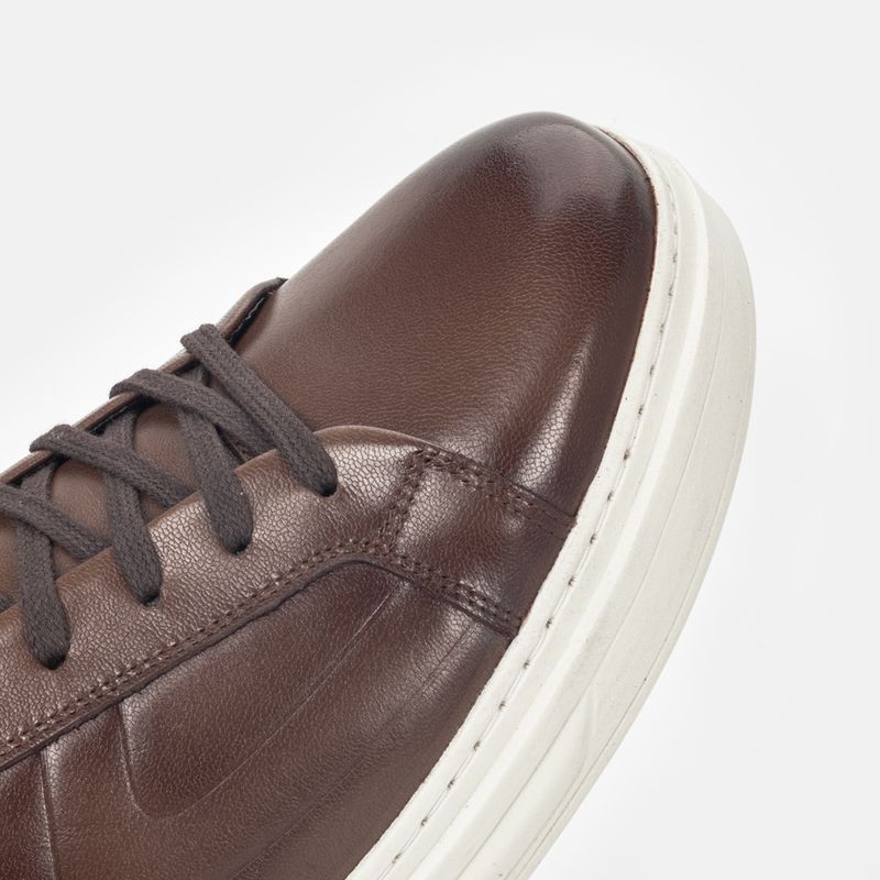 Tênis casual em couro Pelica Premium marrom claro com cadarço, solado com Air Bag Technology e forra...