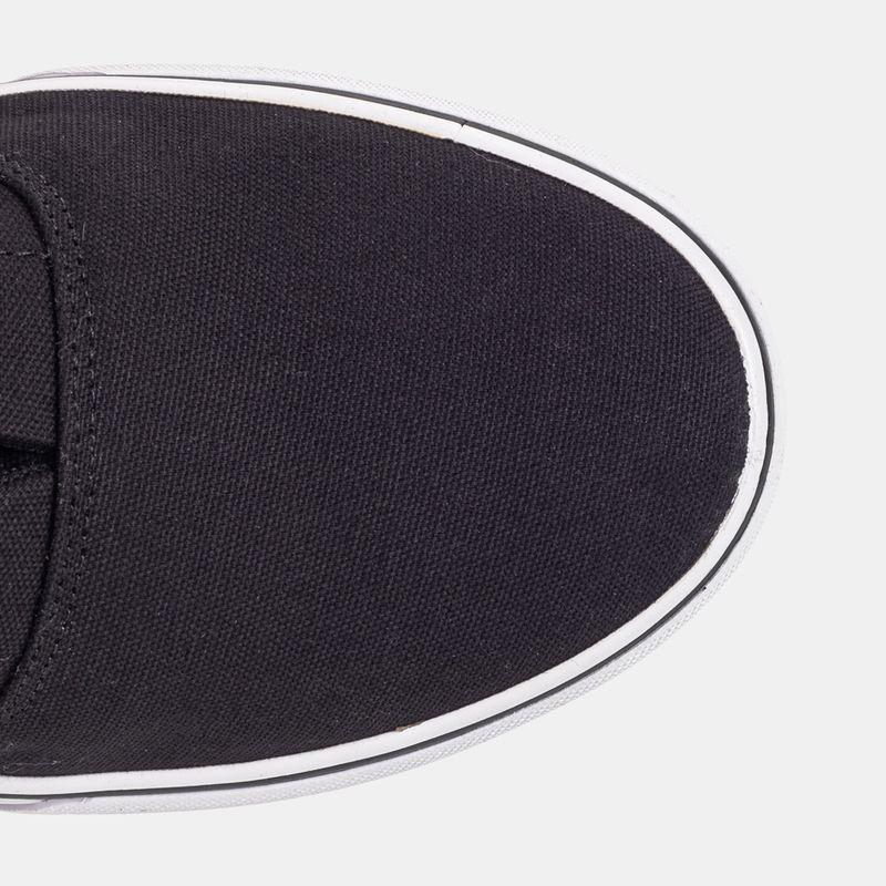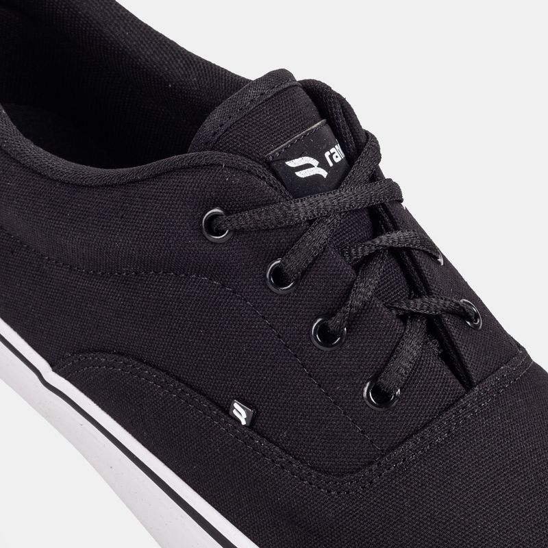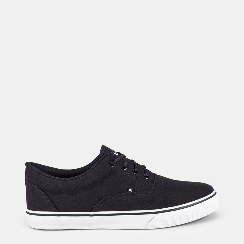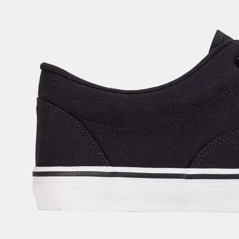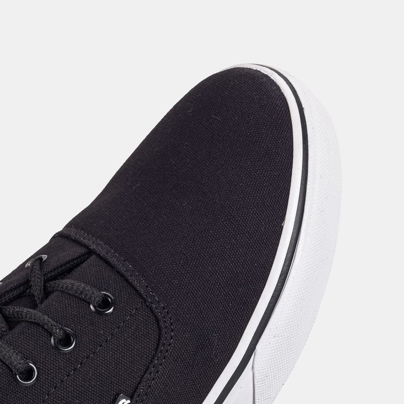 Tênis casual com amarração em cadarço Lona preta e sola branca Palmilha forrada, com reforço anatô...
