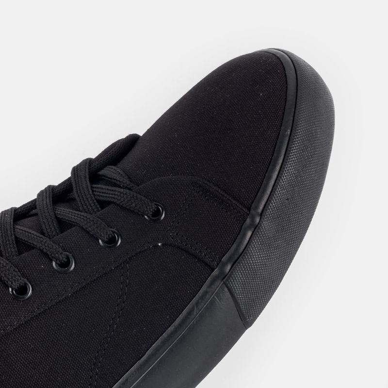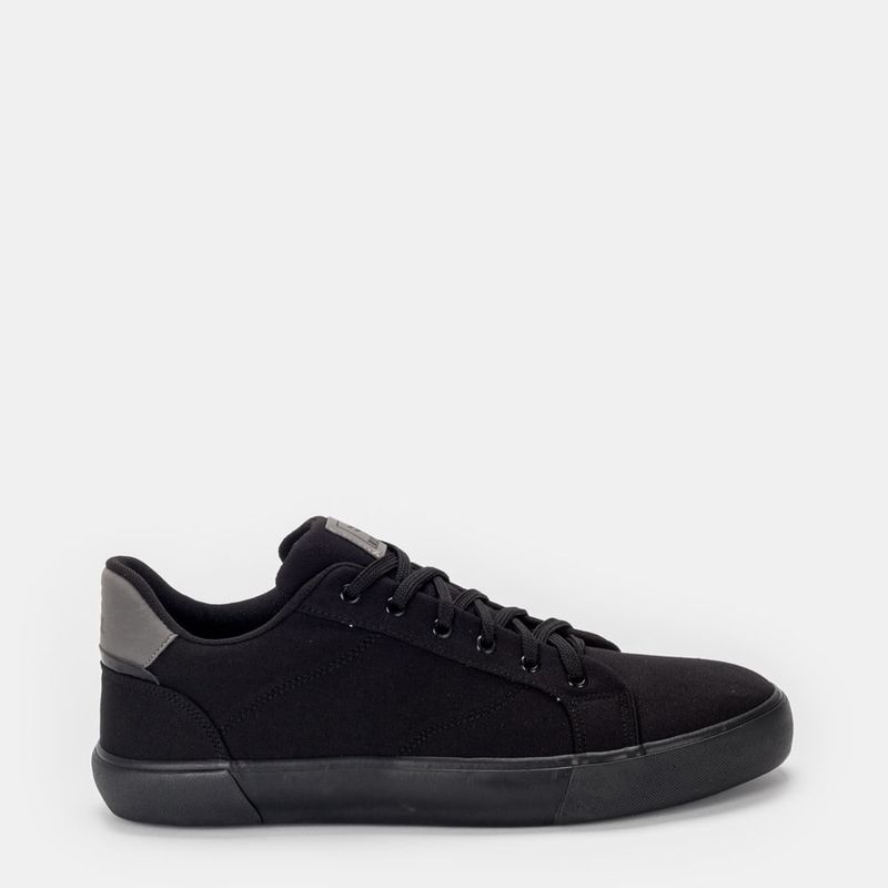 Tênis casual com amarração em cadarço Lona preta e sola preta Palmilha forrada, com reforço anatôm...
