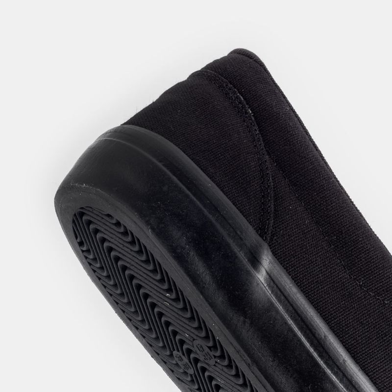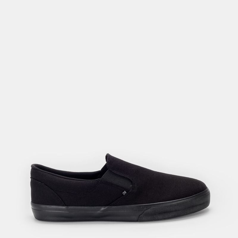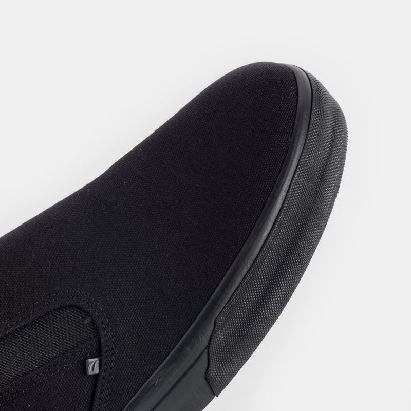 Tênis slip on com elásticos nas laterais Lona preta e solado preto Forro em tecido com entorno do ...