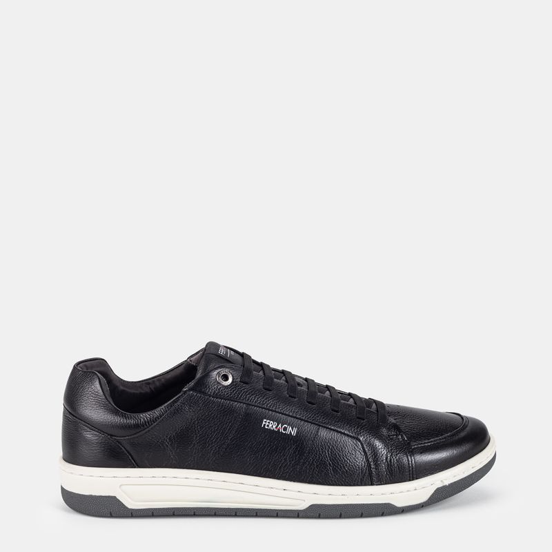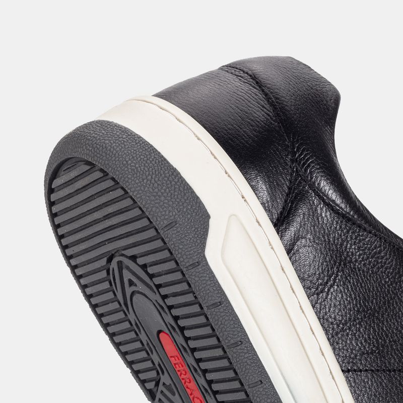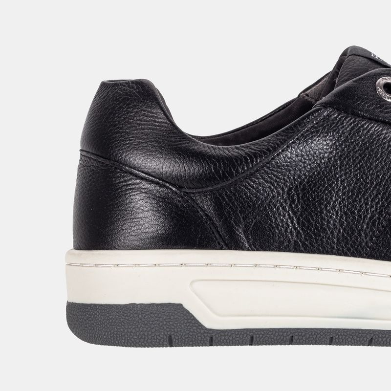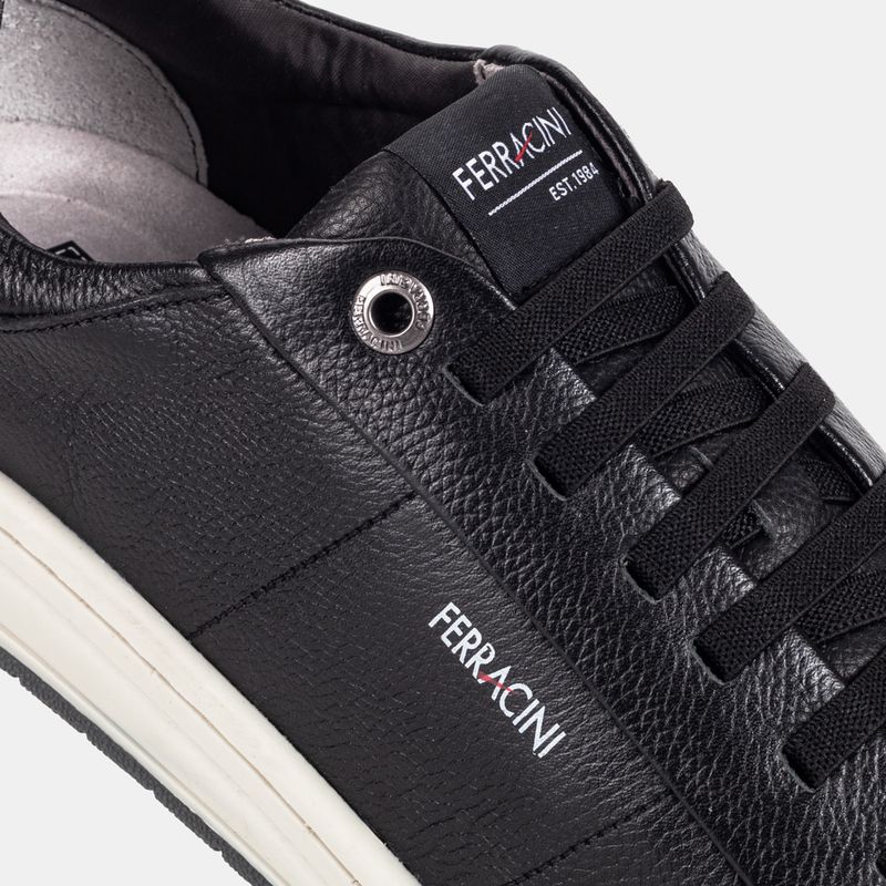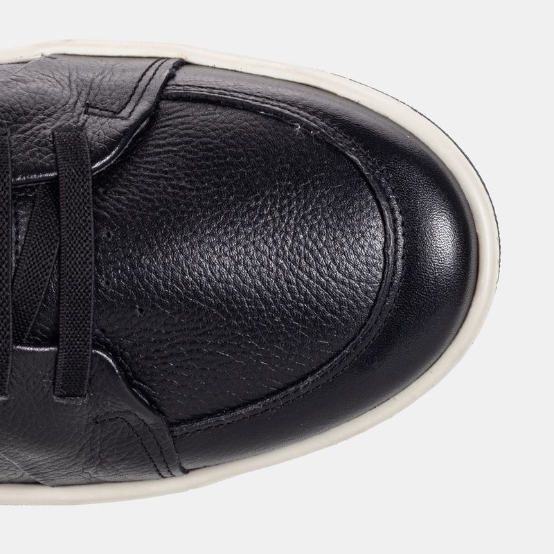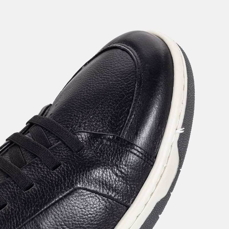 Tênis casual com acabamento pespontado, solado alto e fechamento em cadarço Couro macio preto Forr...