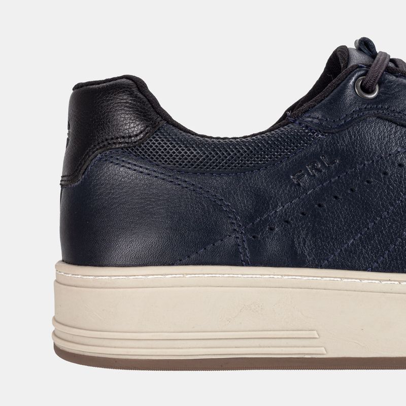 Sapatênis casual com fechamento em elástico e acabamento pespontado Couro macio marinho e detalhes ...
