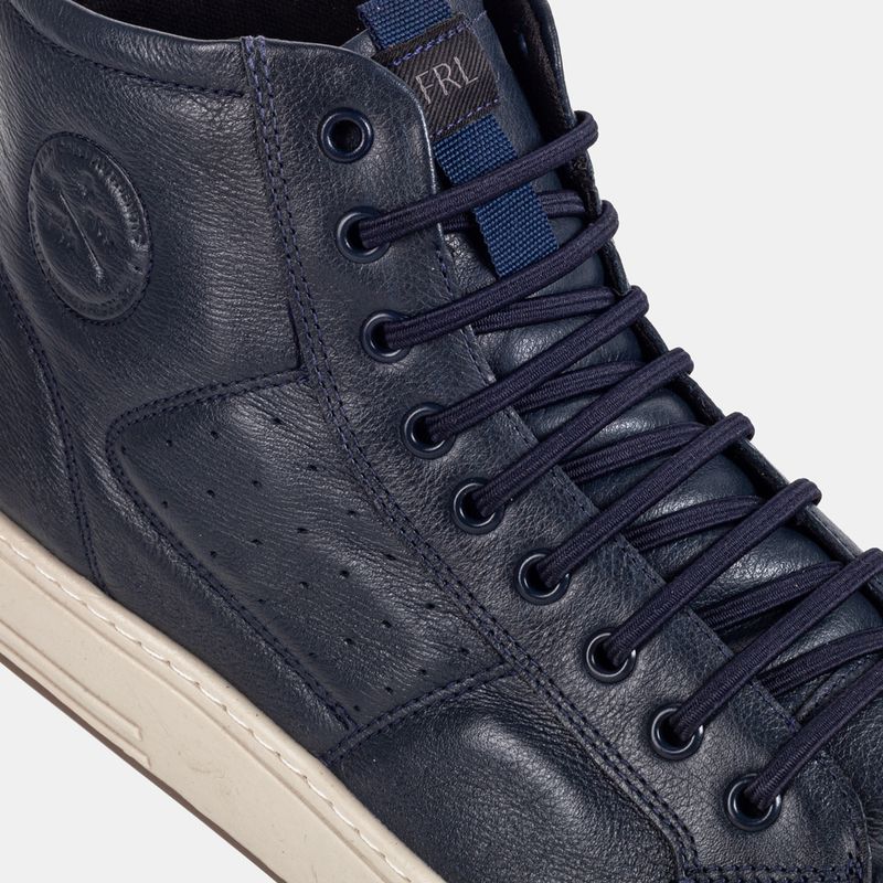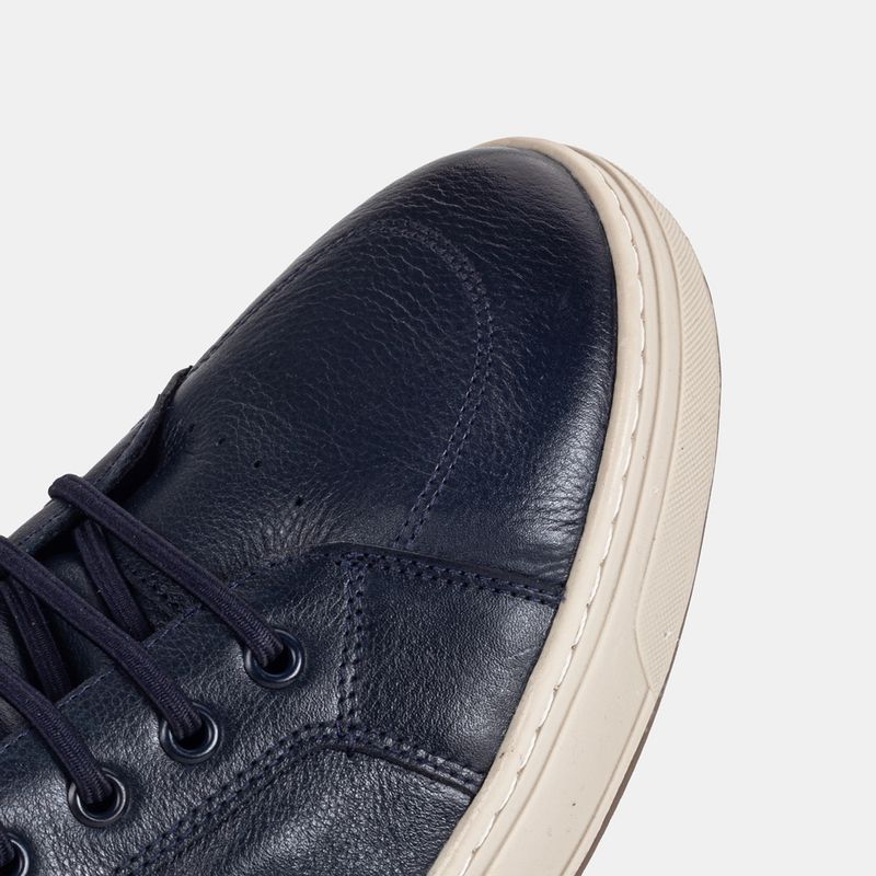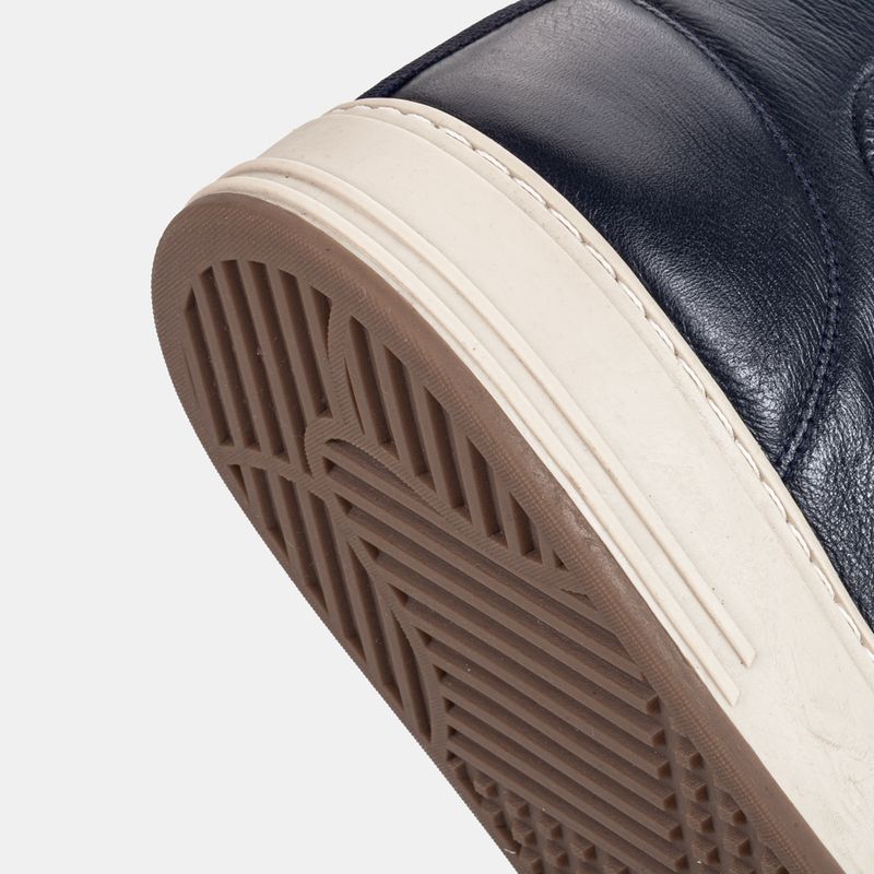 Tênis casual com cano alto, fechamento em elástico, zíper na lateral interna e puxador traseiro