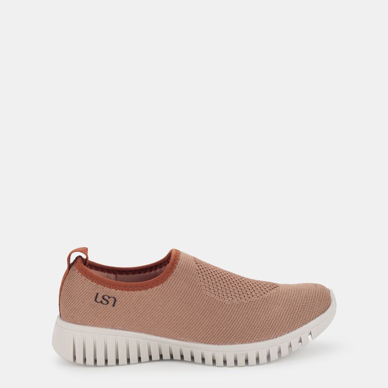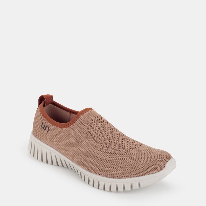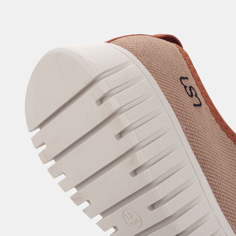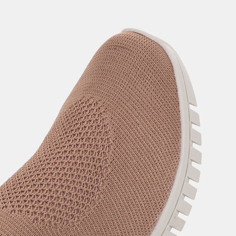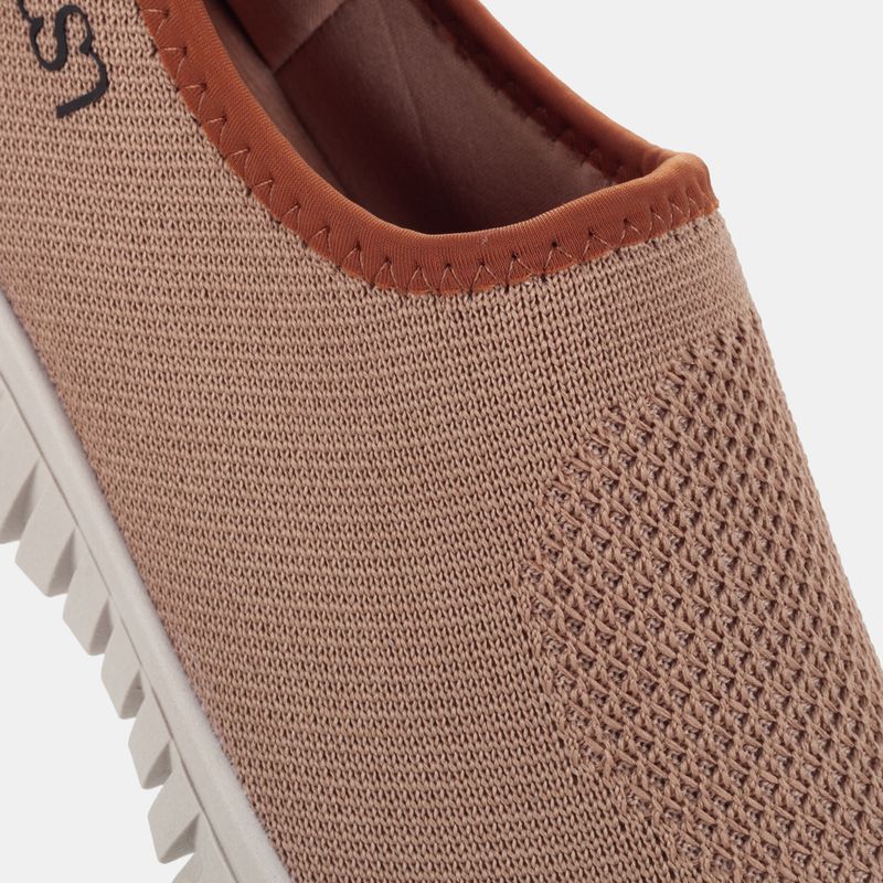 Tênis casual com puxador traseiro Tecido tramado e respirável canela com gola chocolate Forro em t...