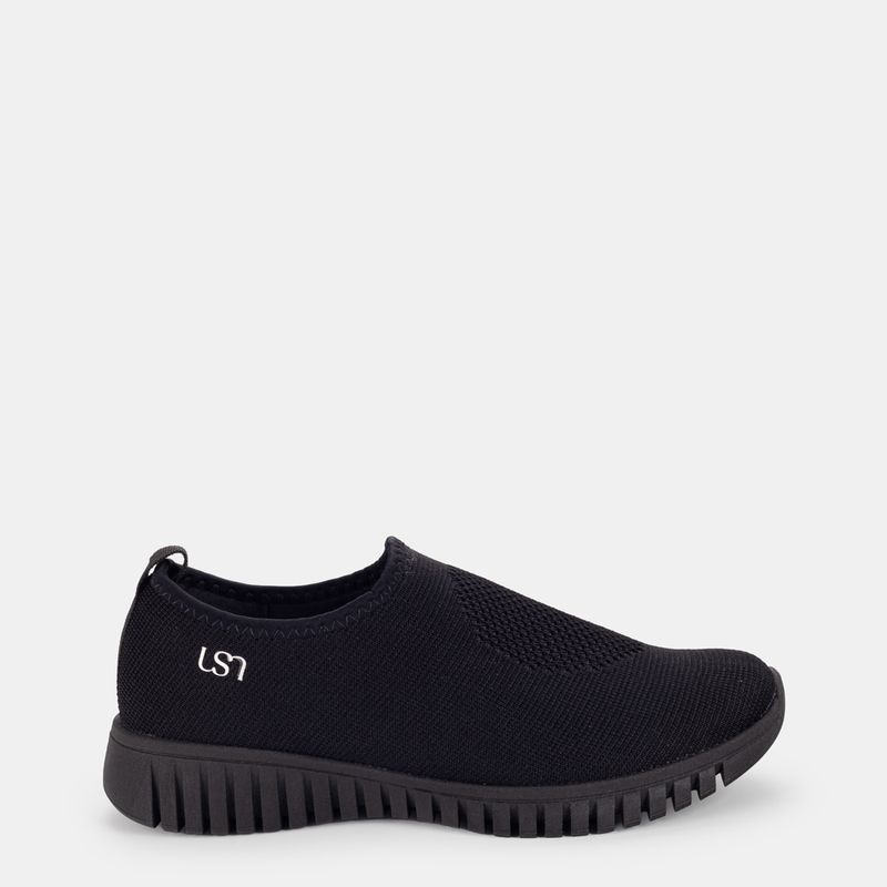 Tênis casual com puxador traseiro Tecido tramado e respirável preto Forro em tecido sedoso e antib...